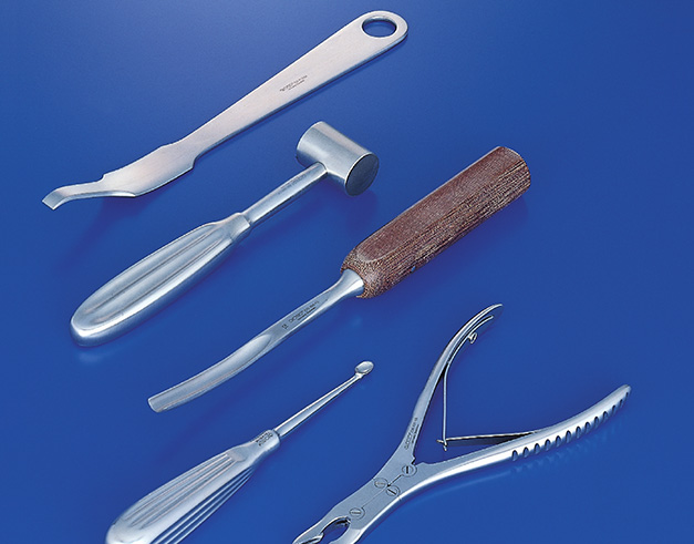 骨膜剝離器、咬骨鉗、乳突牽開器、骨鉆、椎板咬骨鉗、椎板牽開器、髓核鉗、骨鑿、骨刮匙、骨膜剝離器、骨錘、復(fù)位鉗、持骨鉗、鋼板彎曲鉗、鋼絲鉗、咬骨剪、鋼絲剪、骨撬、截骨刀、石膏剪、 石膏鋸、石膏刀、石膏撐開器、骨鋸、骨銼、骨錐、骨克絲鉗、骨探針、打孔器、鋼絲結(jié)扎鉗